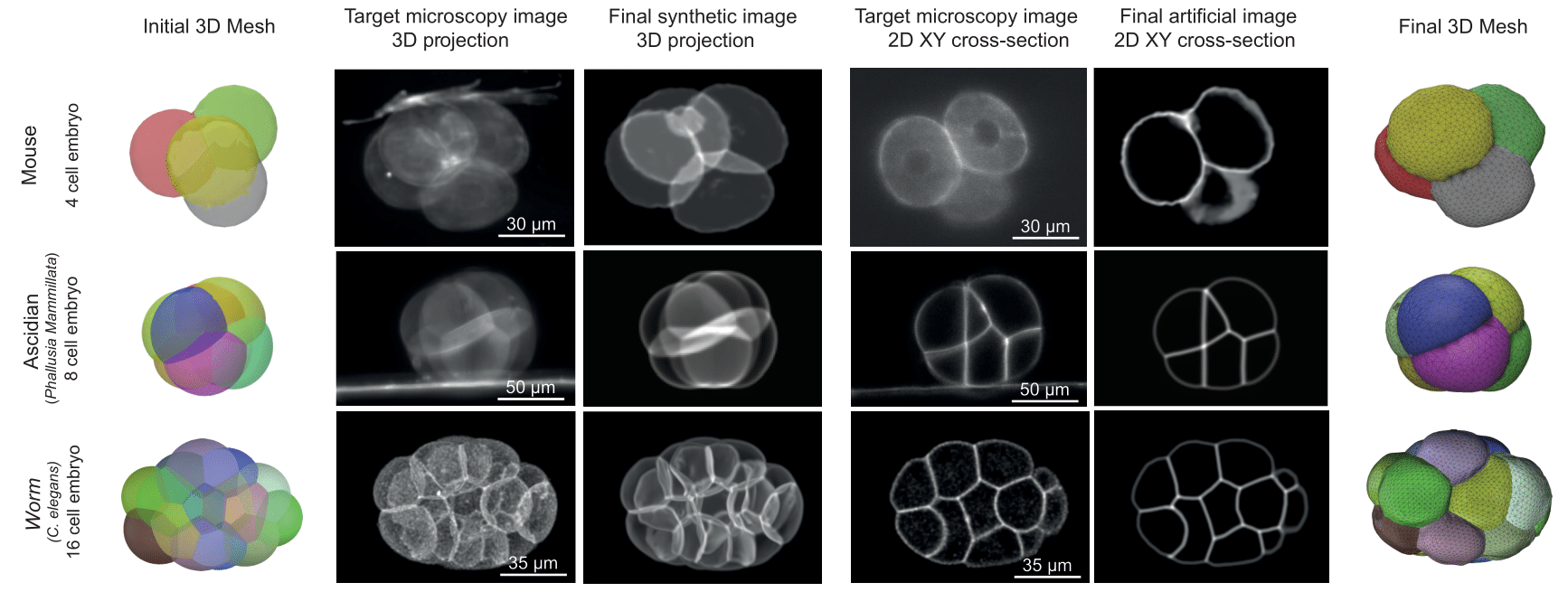differentiable shape models of cells in young embryos — both static and